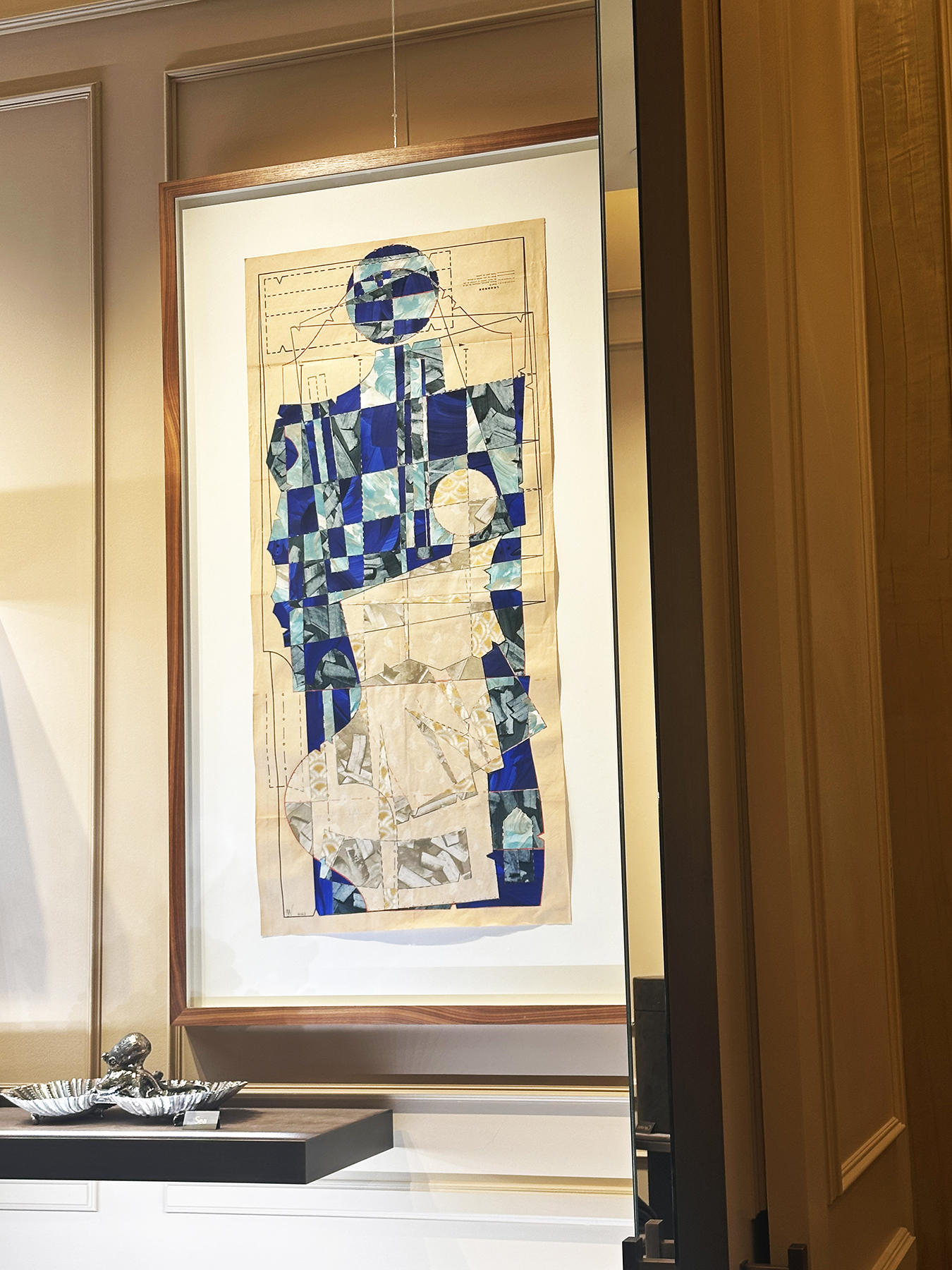 In the words of Piero Tomassoni – “The practice of Hormazd Narielwalla (b.1979, India) works by invocation rather than illustration. Initially trained in Fashion Design before obtaining his PhD in Fine Art, Narielwalla builds patterns and figures from historical sewing templates: sleeves fold into laps, joined panels imply seats, and the voids between cut pieces trace an absent body. Rooted in an interest in identity and cross-cultural aesthetics, his work treats these fragments as repositories of personal and collective biography, where histories meet and subjects are remade. This archival, manual logic, employing scissors and pattern, is at the heart of Narielwalla’s making.